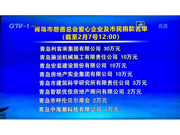 2020年2月3日,在疫情突發(fā)的時刻,青島施運機械施工有限責任公司為馳援湖北武漢,向青島市慈善總會捐助了10萬元現(xiàn)金,為共同抗疫,戰(zhàn)勝疫情盡一份綿薄之力。